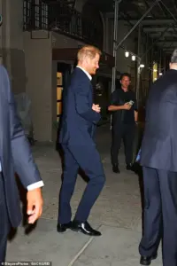The Duke of Sussex was seen entering a car in Manhattan, dressed in a suit as he prepared to enjoy the crisp fall evening.