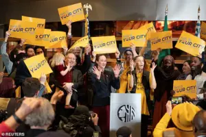 She also accused Republicans of fostering an environment where ‘our neighbors and our children’ are harassed based on the belief that they are ‘inherently untrustworthy.’ These remarks align with Wilson’s broader campaign promises, which emphasize affordability, homelessness, and progressive taxation of the wealthy. ‘I’m kind of a rabble-rouser,’ Wilson said in a recent interview, ‘but I campaigned on issues that matter to everyday people.’