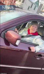 The grainy footage captures Rebecca urging Ross to ‘show his face’ as she asked, ‘you want to come at us?’ Federal agents quickly surrounded the SUV, and a tense confrontation ensued.