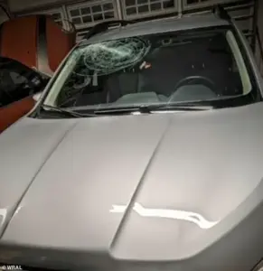 The force of the impact shattered the glass, leaving a massive crack that extended across the front of the car.