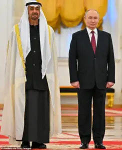 Vladimir Putin (right) with the president of the United Arab Emirates, Mohammed bin Zayed Al Nahyan, in Moscow last week